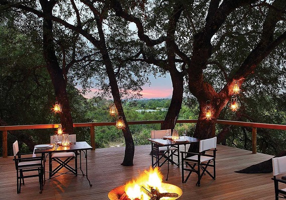 The traditional Shangaan boma is used on alternate nights, and is a truly memorable way to experience an evening under the African night sky. Fine cuisine and wines can be sampled while sitting near a warm crackling fire. On arrival at the boma through a path of flaming torches, guests will be welcomed by their ranger, who will greet them with a drink and a pre-dinner appetizer, before meeting around the fire to tell of exciting adventures had on the game drive that afternoon. Guest’s tables are complemented by candles and rustic hurricane lamps, which complete the full experience of true African dining.
